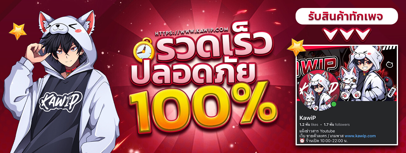 เมื่อได้รางวัลหรือสั่งซื้อแล้ว กดที่ปุ่ม "ติดต่อร้าน" จะเด้งไปที่เพจ KawiP มีทีมงานคอยตอบแชทและส่งสินค้าให้นะจ๊ะ